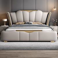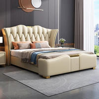 Роскошная кожаная Минималистичная двуспальная кровать для главной спальни tifted King/Queen Size Новая высококачественная мягкая атмосфера